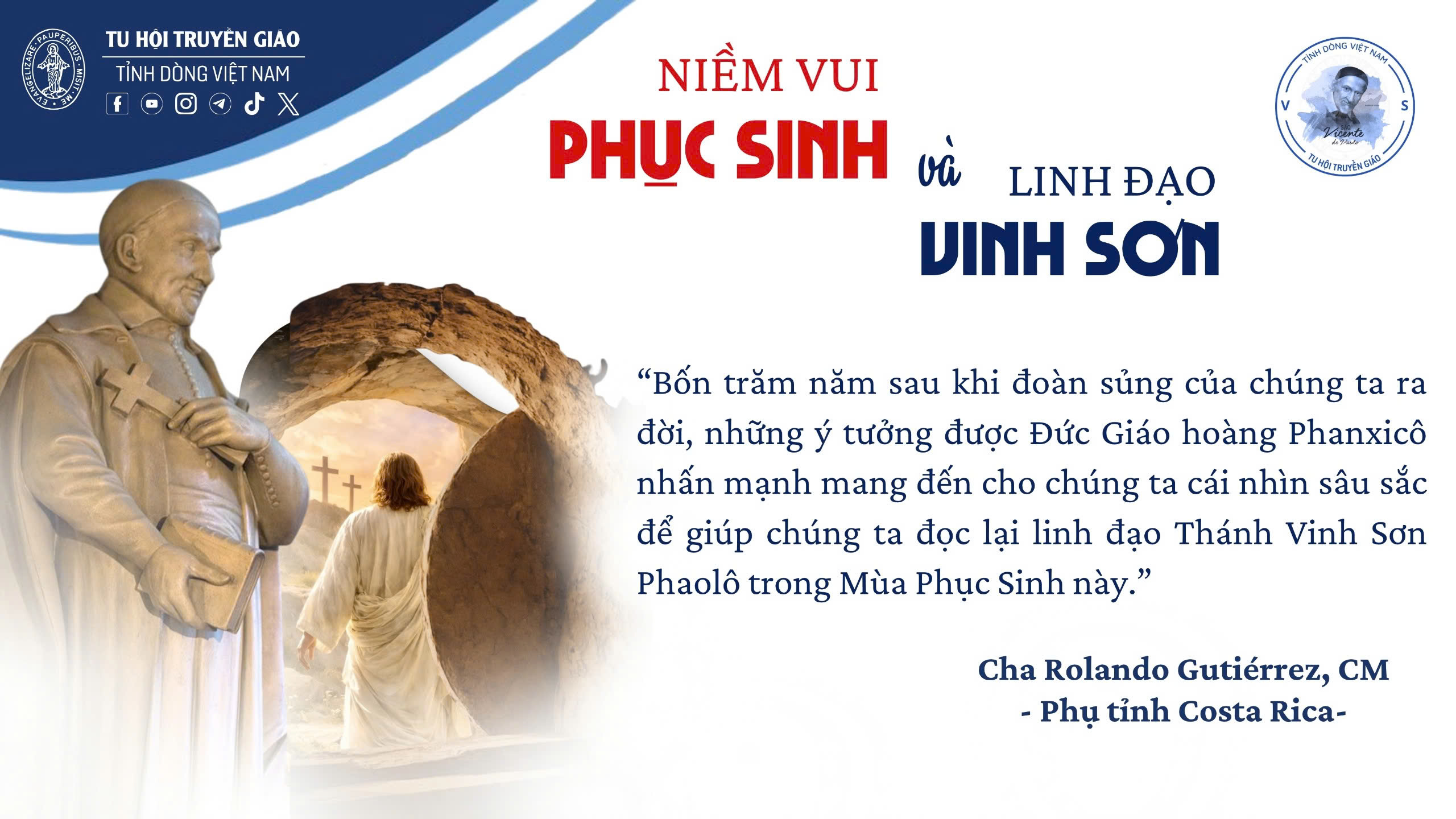Tôi ước mong dừng lại nơi hai giáo huấn của Thánh Vinh Sơn, rất cần thiết để chúng ta sống mùa Chay cách đích thực trong tư cách Gia đình Vinh Sơn; tiếp tục sứ mạng của Đức Giêsu trên trần gian, bây giờ và mãi mãi, trong tâm tình khiêm nhu thẳm sâu.